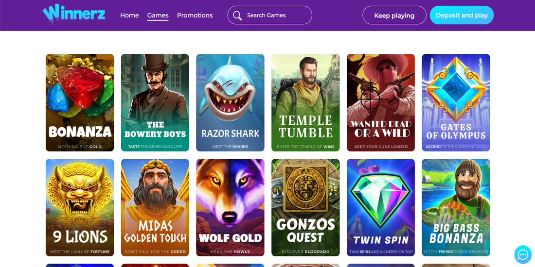 Winnerz Casino-dakı oyun kitabxanası aparıcı proqram təminatçılarından geniş çeşiddə slot, stolüstü oyunlar və canlı diler oyunları təklif edir. Bu, həm təsadüfi oyunçuların, həm də təcrübəli oyunçuların bol əyləncə tapmasını təmin edir. Yeni oyunçular səxavətli pulsuz fırlanma paketi ilə qarşılanır və onlara səyahətlərinə maraqlı başlanğıc təklif edirlər.