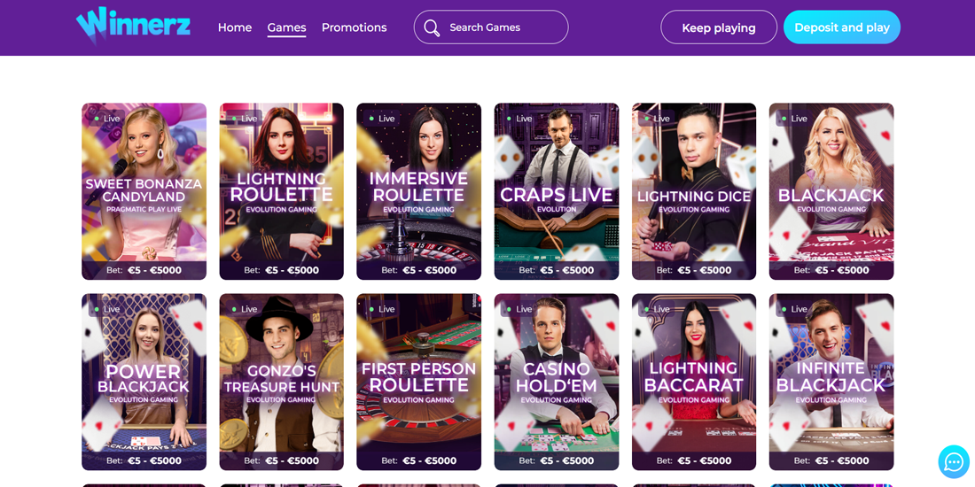 Winnerz Casino-da canlı masalar və oyunlar